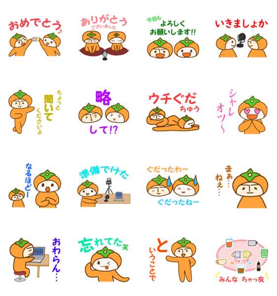 撮る柿農家あっき~と四姉妹の母うたによる夫婦雑談系ポッドキャスト「ウチら夫婦のぐだぐだな話」の公式LINEスタンプ! 番組5周年を記念して制作された記念スタンプです。