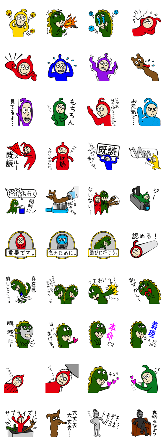 えいりあん君とその友達。謎の生物のスタンプ第3弾。バレンタインちょっとだけ。