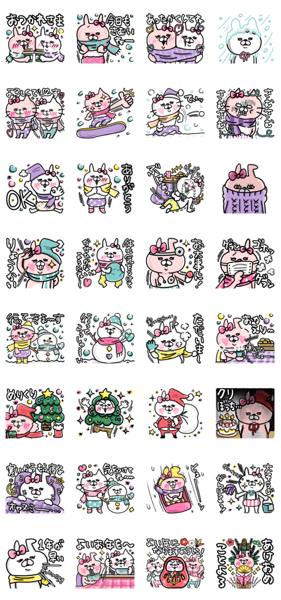 冬&年末年始用*♡よく使う言葉からギャグまで幅広くww色々な人に使えます!!即レスしたい時にも!!うさぎ/ねこ/即レス/ママ友/年末年始/冬/お正月/挨拶/季節/家族/同僚/友達