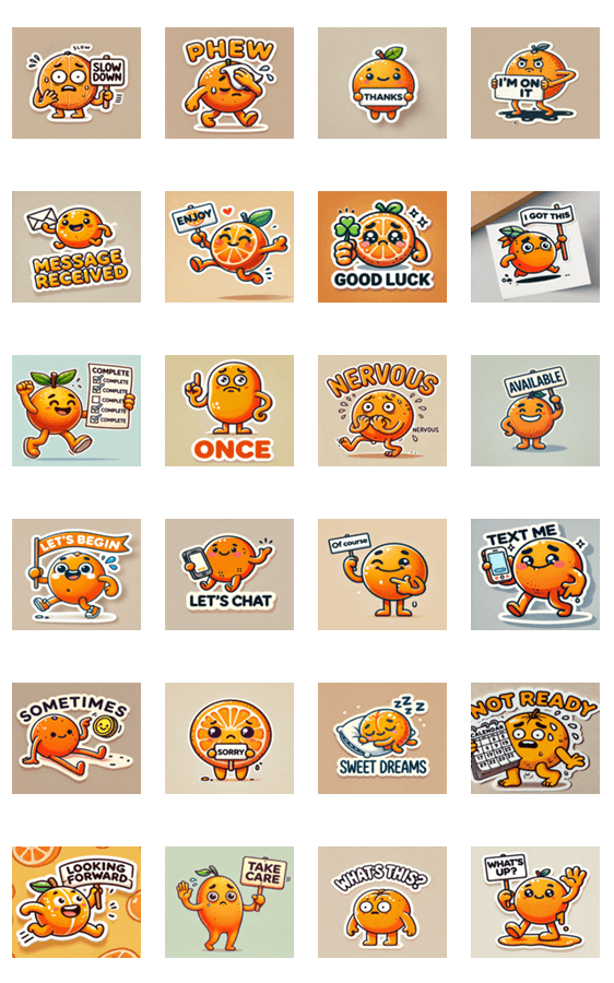 さまざまな感情を表現するポンコツみかんのスタンプセットです。会話にぴったりです!