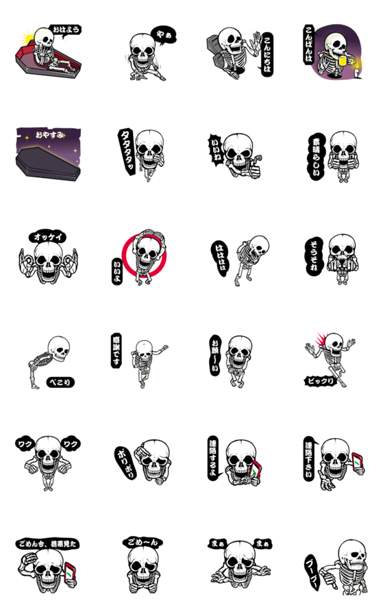 笑う骨/毎日/日本語版/改修版 -LINEスタンプマニア