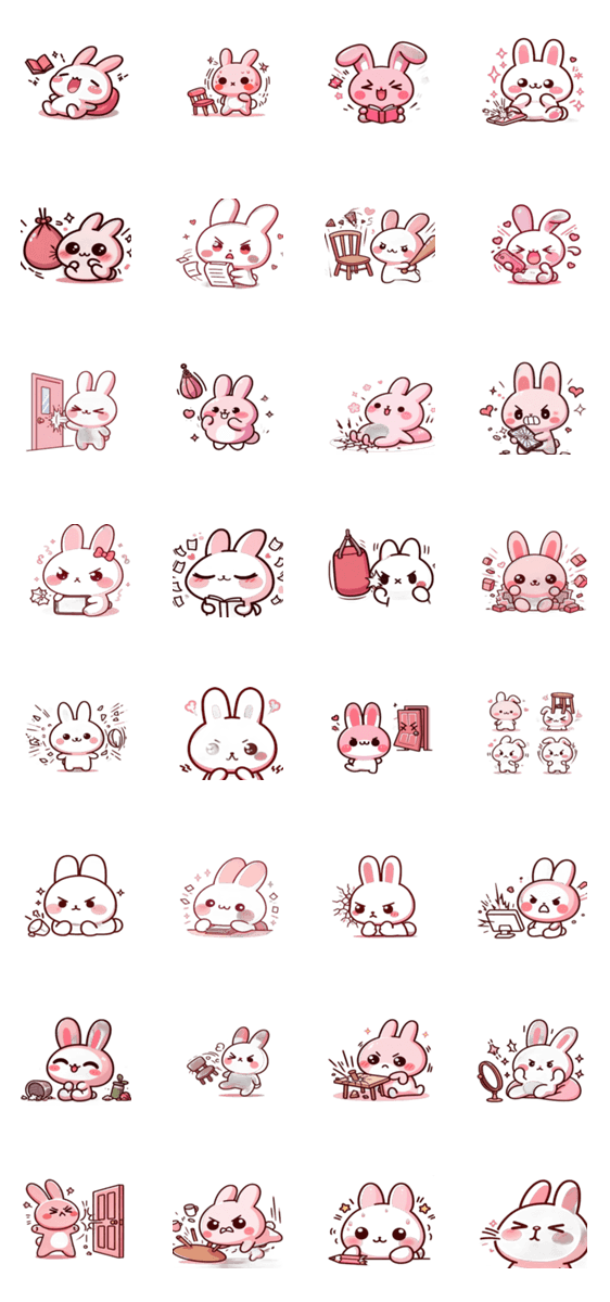 | スタンプ説明 | "ピンクのウサギ既読無視、かわいい、面白い、無関心、アニメ、LINEスタンプ、イラスト、 |