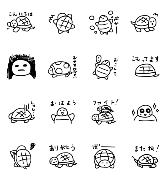 白かめののんびりとしたスタンプです。