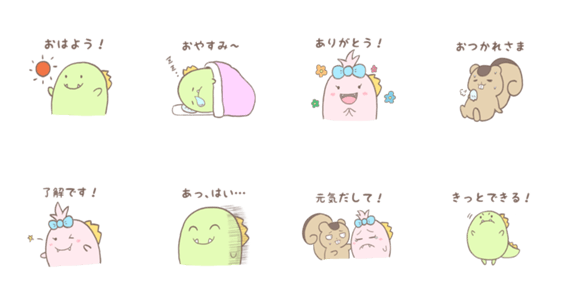 丸くて可愛い恐竜の男の子、ガォーちゃんとその妹のギャオ子、そして友達のリスのどんぐりの日常で使えるスタンプです!
