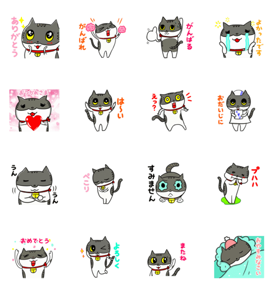 白ネコのあいうえお・・・ってるスタンプ