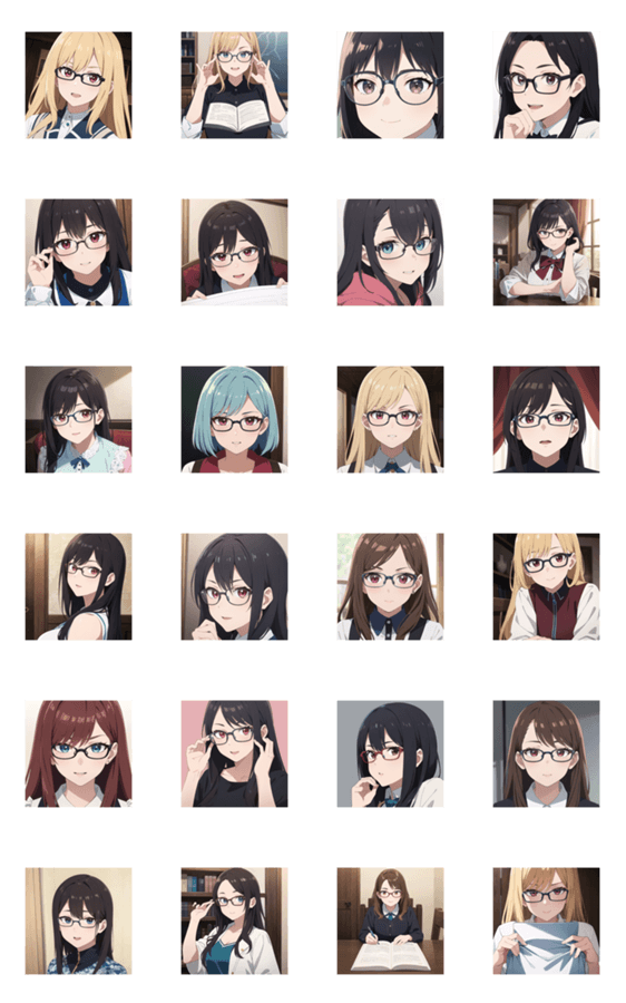 スタンプ説明 可愛いメガネ女子【文字無し】