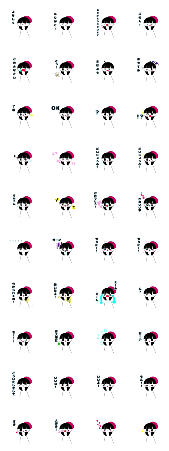 ベレー帽をかぶったミニキャラです。日常会話で良く使えるスタンプです!