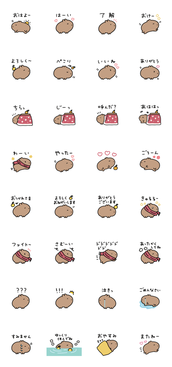 冬に使える♪カピバラのスタンプです ゆるい/かわいい/シンプル/使いやすい/動物/こたつ/みかん