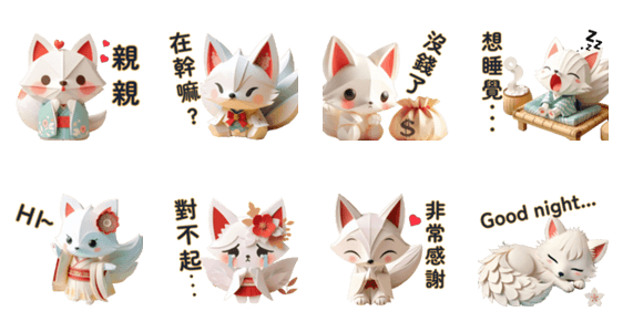 | スタンプ説明 | The little paper fox lives in the mountains and likes to communicate with humans through mobile phones. Everyone is welcome to make friends with the little fox~ |