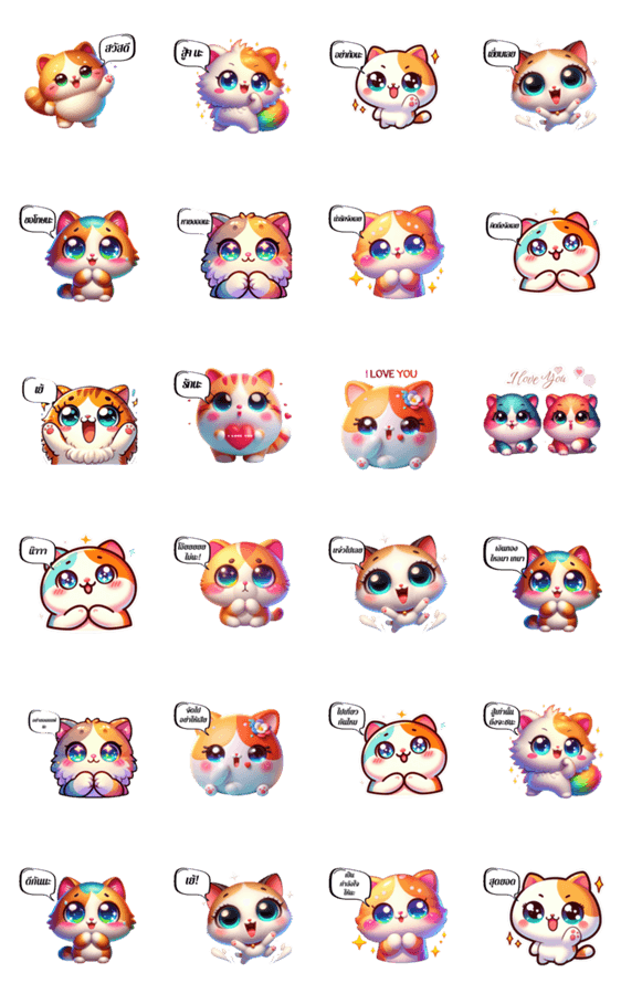 | スタンプ説明 | Little cat has a round body, fluffy fur, big eyes, bright colors, likes to make cheeky faces, mischievous, cute, cheeky. |