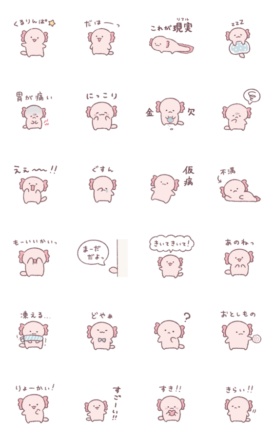 ゆるいウーパールーパーのスタンプです。
