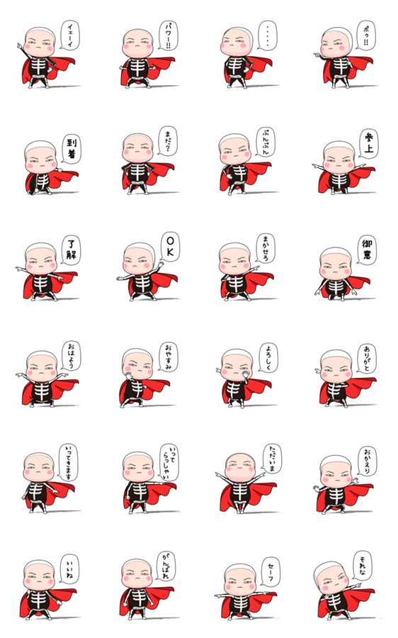 大人かわいいガイコツの全身タイツちゃんがキュートに動く。そんなスタンプです。