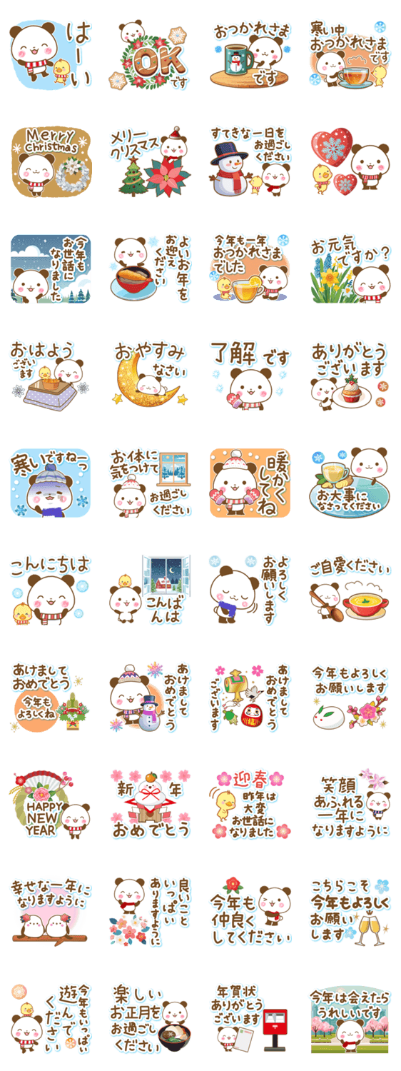 冬のパンダ&ひよこ 年末年始の挨拶 -LINEスタンプマニア