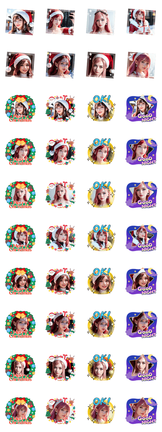 美女8人のクリスマススタンプです。このシーズンに、ぜひ使ってみてください。☆AIイラスト,LINEスタンプメーカー使用☆冬,プレゼント,ピンク,美人,カノジョ,量産型女子