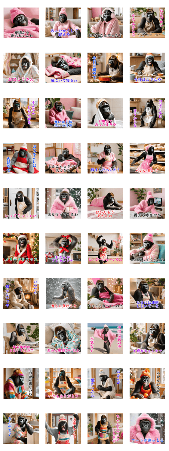 母/おかん/ママ/日常/毎日使える/母ちゃん/親子/関西弁/家族/旦那/冬ゴリラ/あったか/大阪のおばちゃん/マダム/友達/ゴリラママ おもしろ/シュール/ネタ/ギャグ