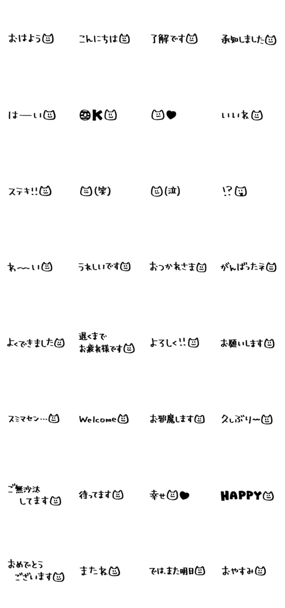 大人可愛い言葉のシンプルな省スペーススタンプ。白抜き文字なのでトークの背景が黒くても見えます!/デカ文字/おはよう/おやすみ/幸せ/笑/泣/挨拶/あいさつ/作:さあや