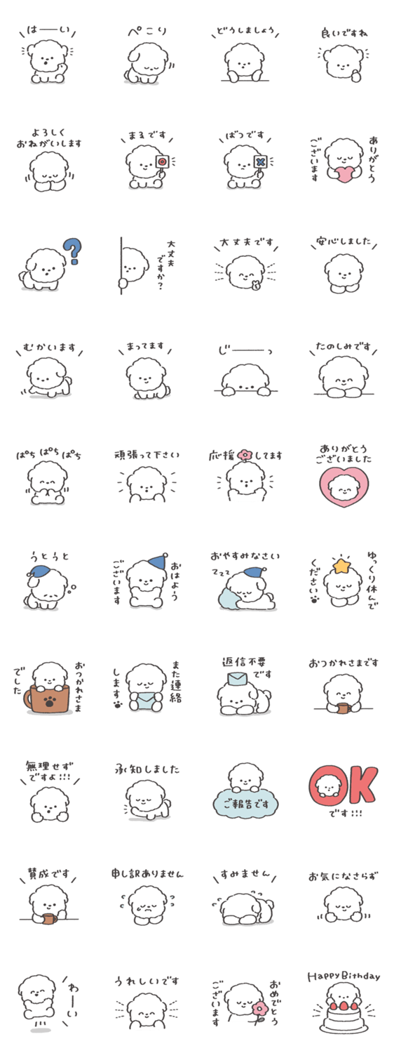 ふわふわもこもこ♡のワンちゃんスタンプです♪ (いぬ/犬/わんちゃん/ビションフリーゼ/マルチーズ/日常/敬語/会社/仕事/丁寧/大人/挨拶/優しい/使いやすい)