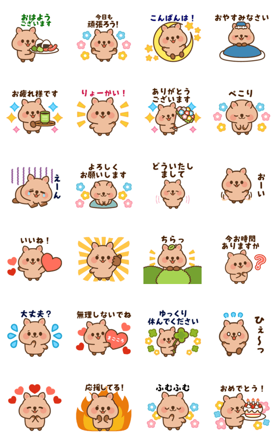 気軽に毎日使える♪お返事するときに使いやすいクアッカワラビーの、飛び出すスタンプです。