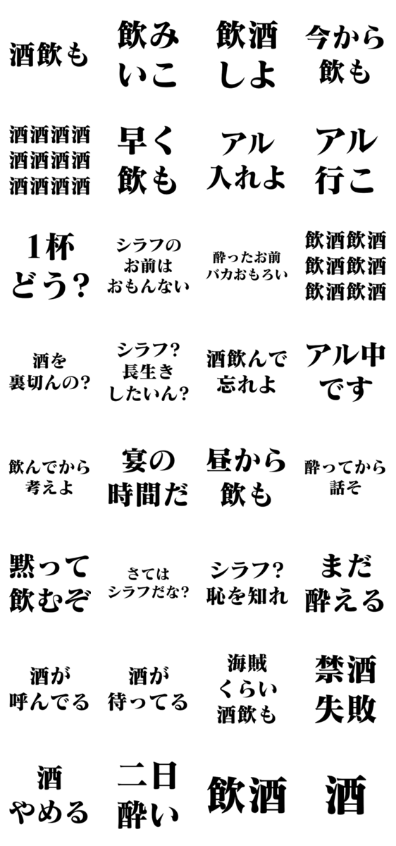誘いたいときに使ってください/面白い/ネタ/煽る/かわいい/毎日/日常/酒/飲み会/恋愛/夫婦/嫁/旦那/妻/夫/彼氏/彼女/下ネタ/メンヘラ/カップル
