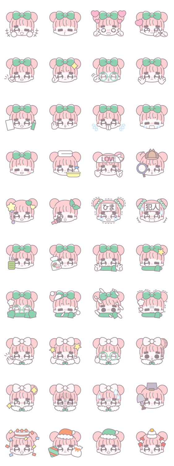 おだんごヘアーの女の子。 リボンの色違いもあるよ!! 友だち/仲良し/親友/姉妹/女の子/クリスマス/お正月
