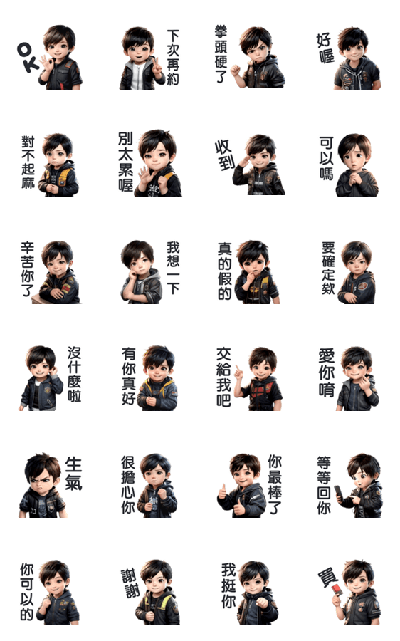| スタンプ説明 | Animated lively and handsome little boy adds fun to your line chatting with the cutest and most vivid expressions. |