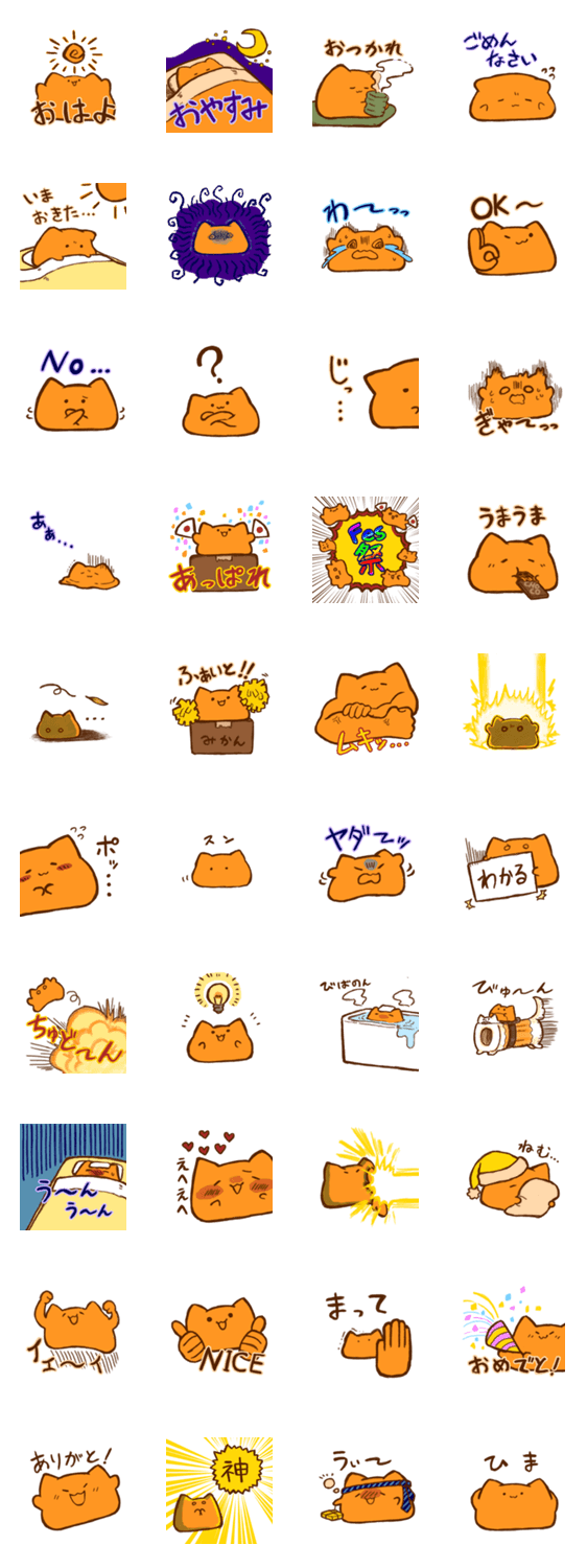 オレンジ色のなぞの生き物「グミ」のつめあわせスタンプ。