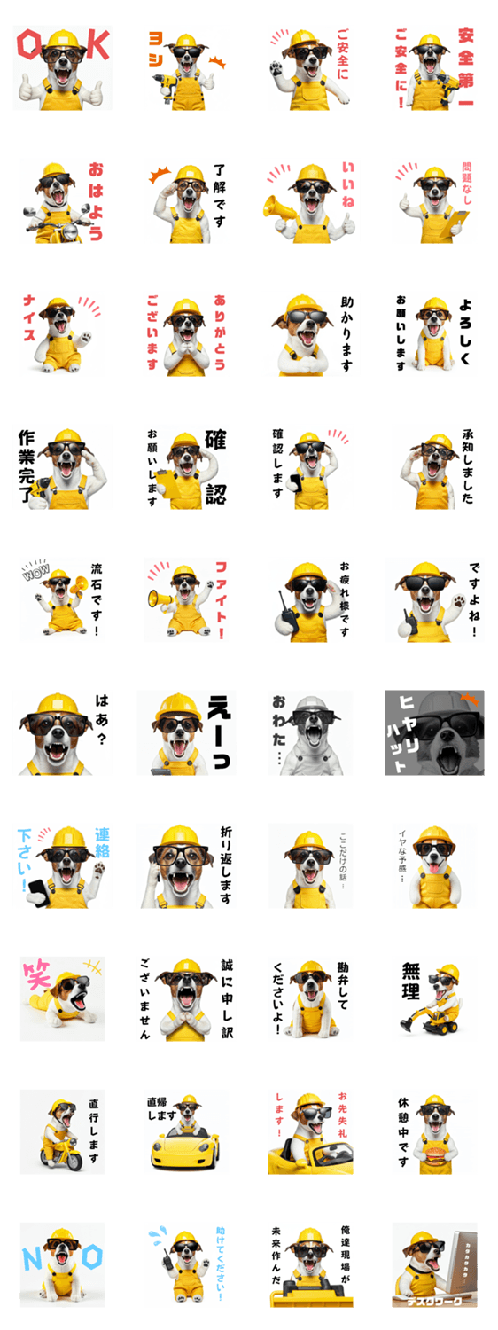 工事現場/土木/大工/鳶職/左官/職人/親分/棟梁/ 兄貴/ガテン系/建築/ 住宅/社会人/働く/ゼネコン/日常会話/毎日使える/丁寧敬語/グラサン現場犬/いぬ/ぬいぐるみ/ 着ぐるみ
