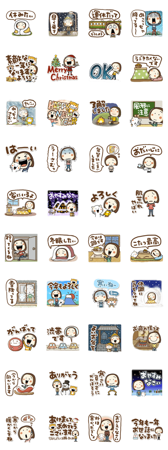 冬のらんちゃんスタンプです。時々猫や犬も出てきます。