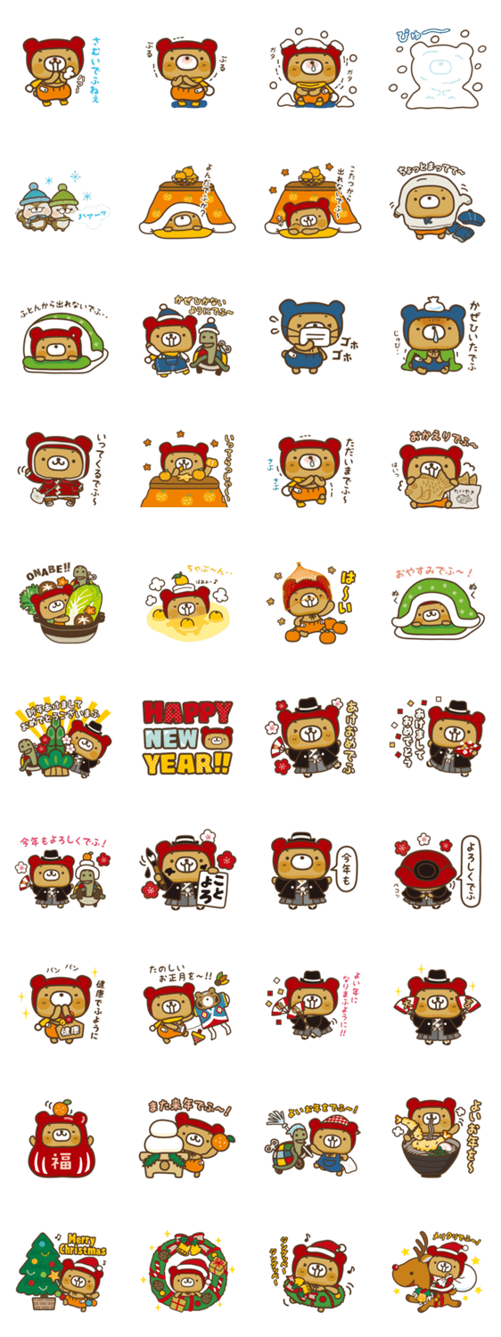 「〜でふ」「〜まふ」が口ぐせの、星の輪ぐまの子「くーまん」のスタンプ第3弾 冬バージョン! 年末年始に使えるスタンプもいっぱいあるでふよ♪