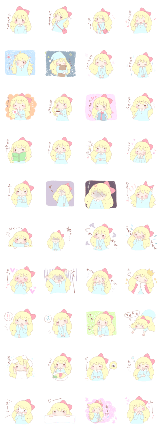 赤いリボンの女の子「みーちゃん」の日常会話で使えるスタンプを詰め込みました。