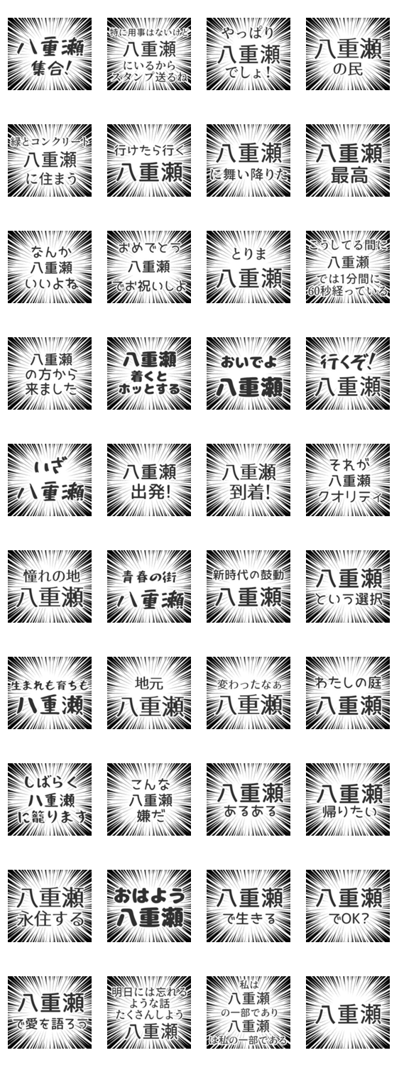 地元のための漫画風セリフスタンプ。集中線で叫べ。地元の人にも憧れてる人にも。面白いのが見つかると嬉しい。集中線。地元愛。