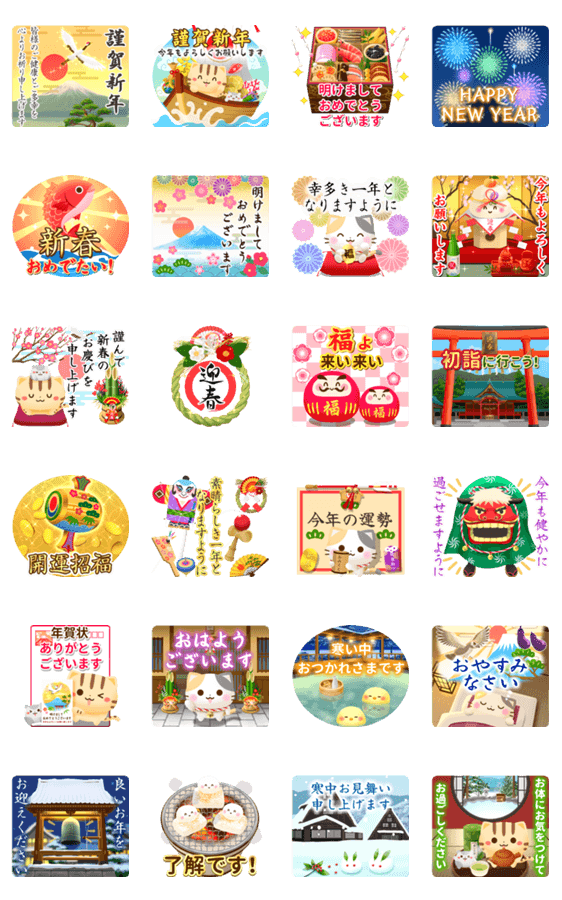 毎年使えるお正月のご挨拶が盛りだくさん♪普段お世話になっている方々へ新年のご挨拶を届けてあげましょう!(※こちらは再販のため、以前販売したものと同じ内容です。)