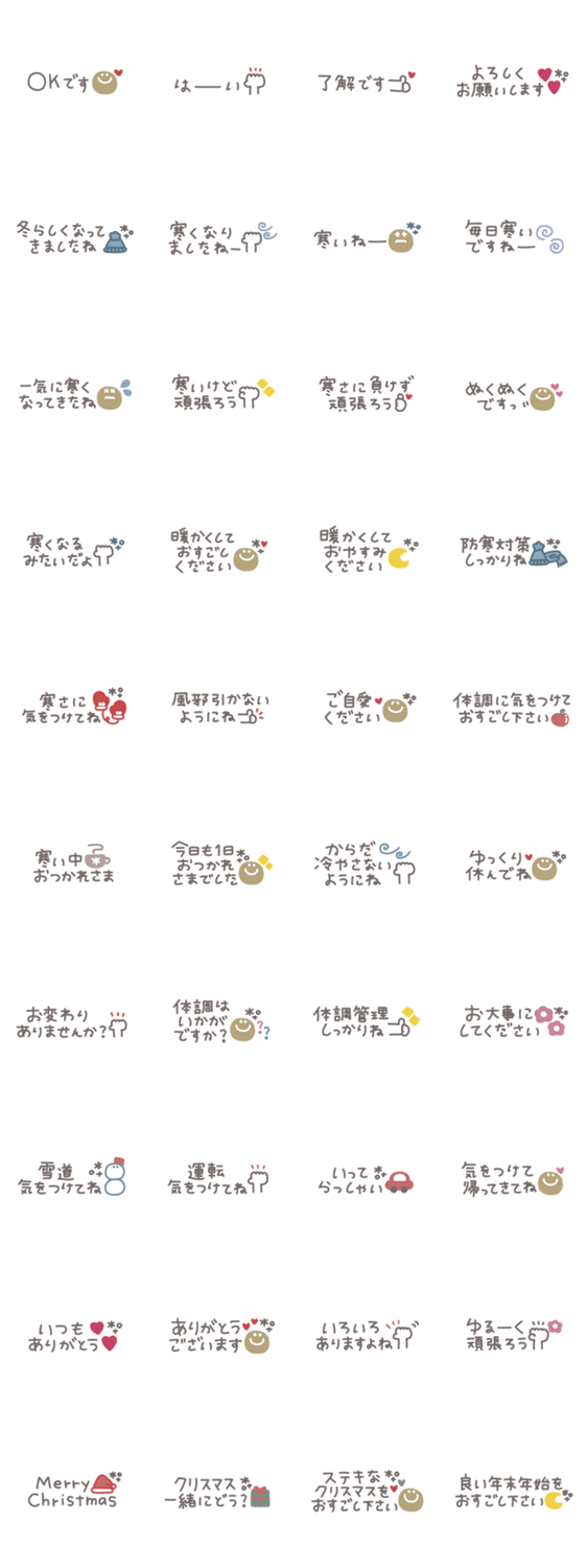 お洒落で1つあると便利なメッセージスタンプです。 シンプル/見やすい/ゆる/大人可愛い/くすみカラー/毎日使える/あいさつ/大人女子/省スペース/冬