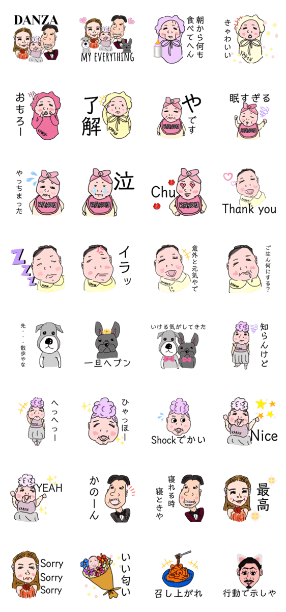 DANZA A MORE+でお馴染みのあの先生とこの先生とあの子がスタンプになりました。あんな子やこんな子に使って欲しくて丹精込めて作りました。では、第二弾どうぞ。