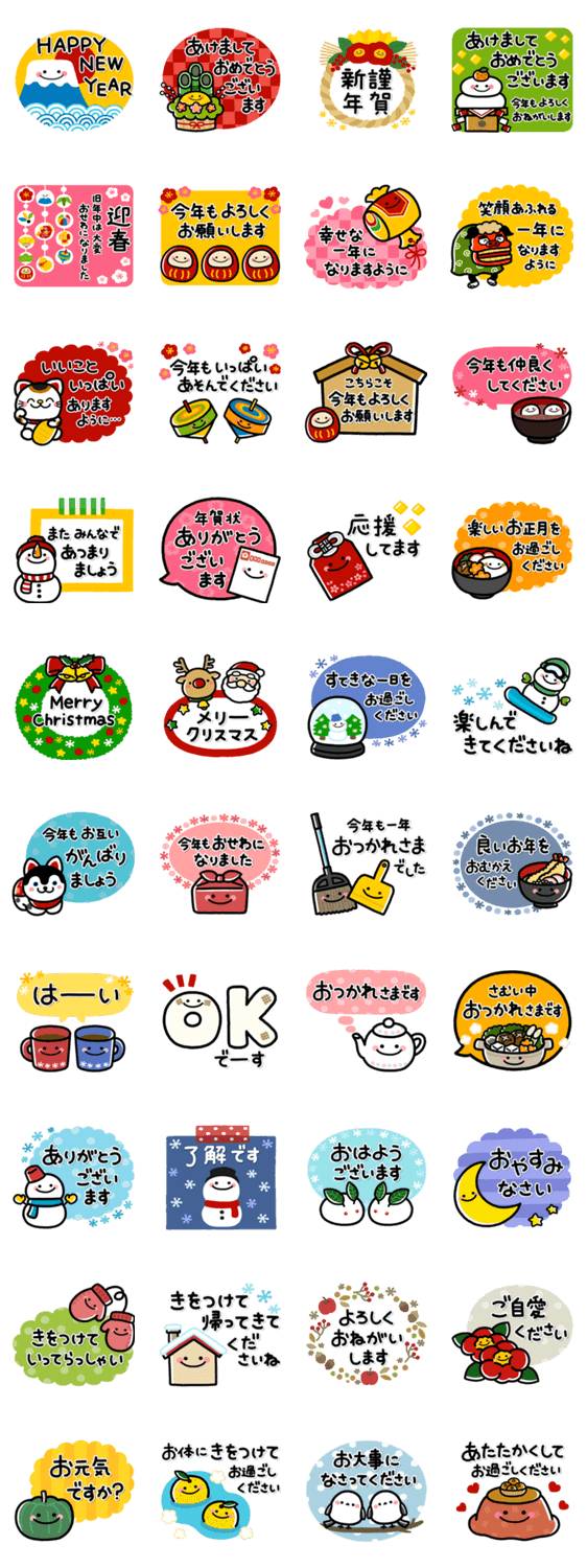 大人向けシンプルな年賀スタンプです。どなたでも使える内容を揃えましたのでスタンプ初心者の方にもオススメです。年賀/クリスマス付き【作:いしいともこ】