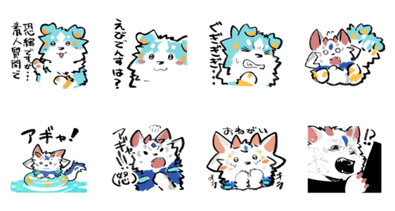 ぬいぐるみの街のマスコット「あいす」くんと、イタズラ好きな龍「スイレイ」がスタンプになったよ