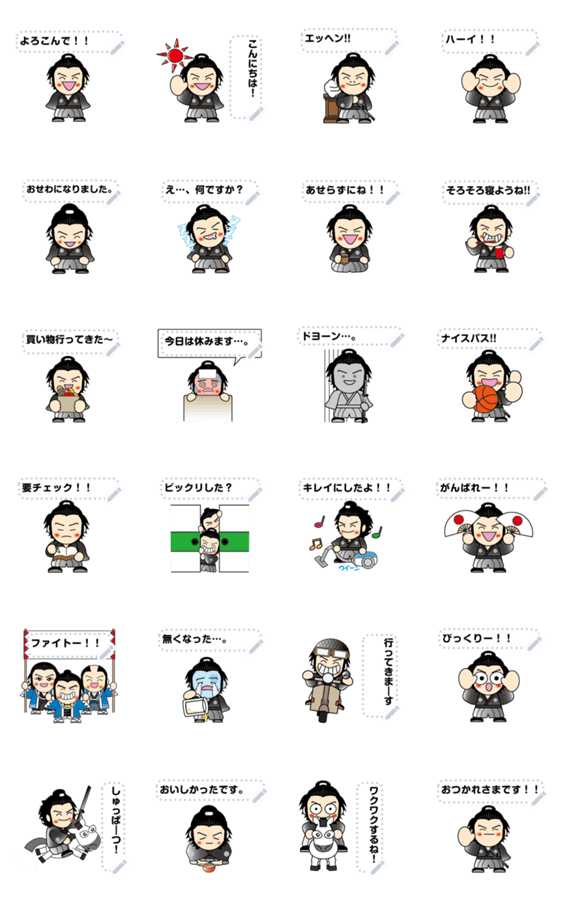 幕末志士りょうまくんのスタンプです。是非ご利用くださいね。 現在この商品は一部のスマートフォン版LINE 10.3.0以上のトークルームでのみ使用できます。動作環境の最新情報はヘルプをご確認ください。