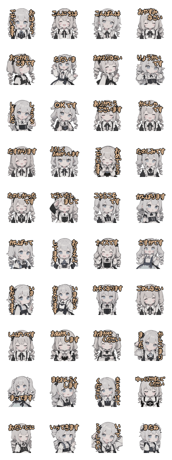 敬語な銀髪メイドのシンプル挨拶 大文字① -LINEスタンプマニア