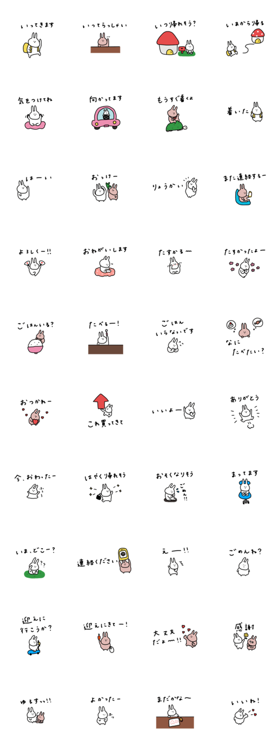 | スタンプ説明 | 時々うさぎのうさぎだけ。ピンクもいる。ミニサイズ。連絡に便利。日常会話。 |