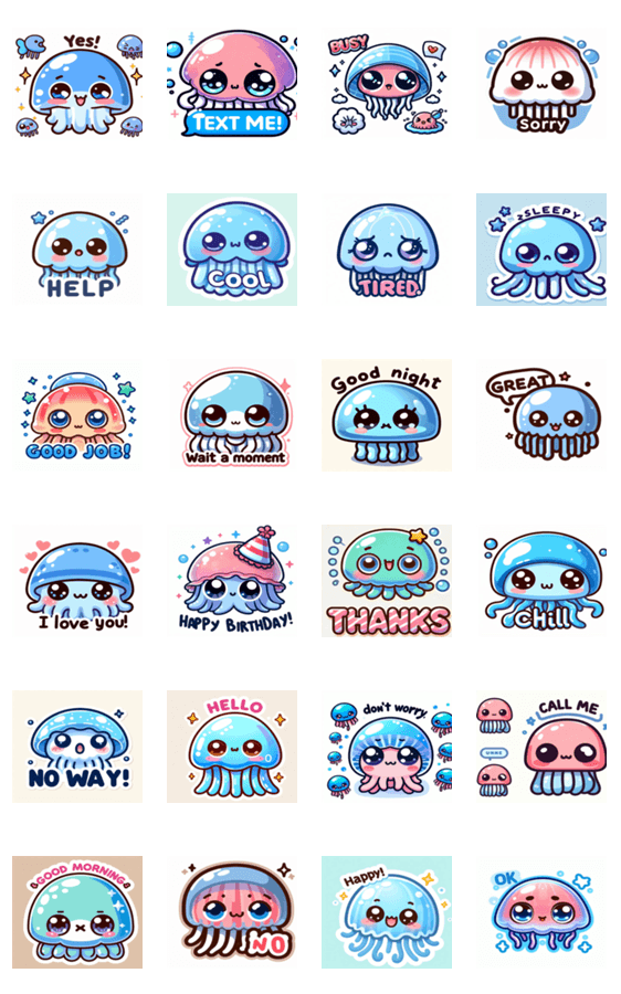 涙ぐむ幻想的なクラゲのスタンプセットです。会話に癒しと夢をプラス!