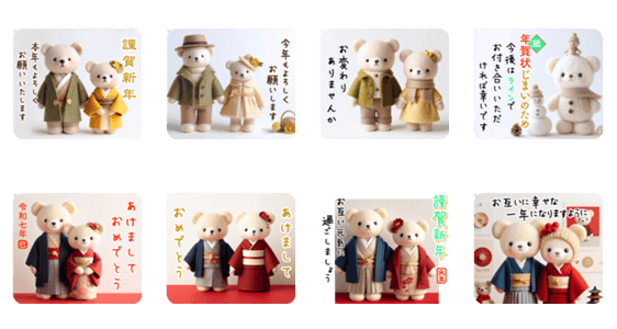 クマさん着物姿 大人のマナー年賀状&お正月 -LINEスタンプマニア