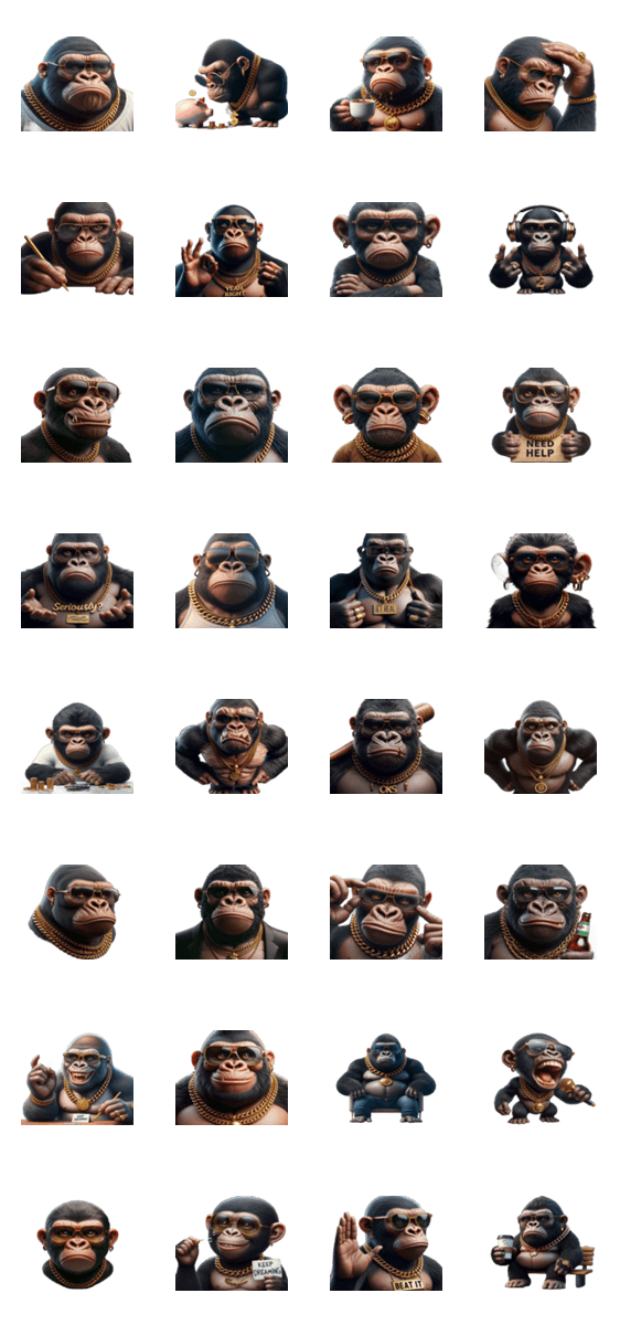 休憩を呼びかけるゴリラの面白い絵文字ステッカー、ユーモア、リラックス、休息、LINEスタンプ、イラスト、コミュニケーション