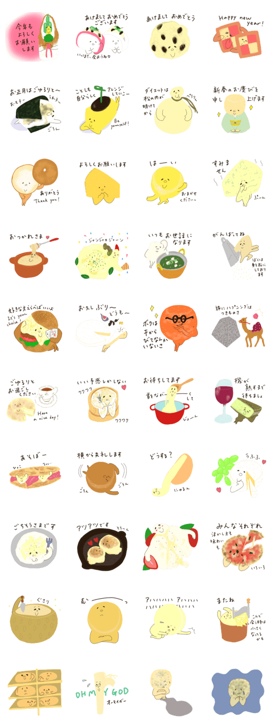 | スタンプ説明 | チーズ好きな貴方へ。チーズにまつわるストーリー。お正月のご挨拶。 |