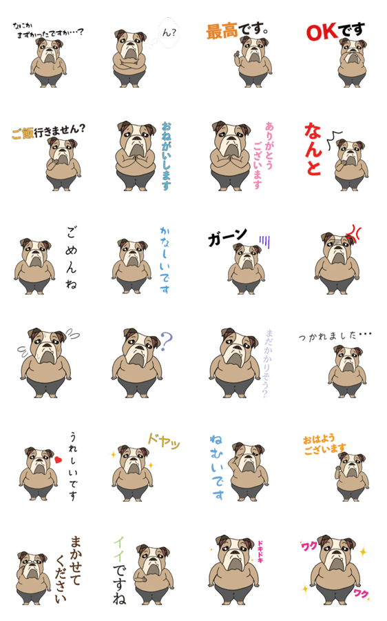 | スタンプ説明 | 一見無愛想に見えるけど実はとても優しくて控えめなブルドッグの"しのぶさん"のスタンプです。普段使いやお仕事シーンなど毎日お使いいただけるものを揃えました! |