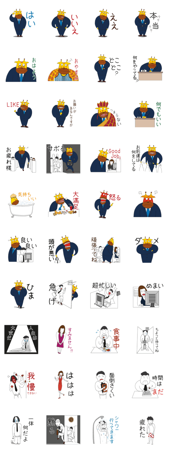 | スタンプ説明 | Mr. 鹿課長は自分に甘く、人に厳しい、仕事をサボって・部下に仕事を押し付けるも多い、非常に感情的な上司です。 |