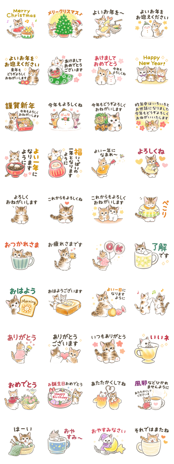 冬に使える表現が満載♪かわいい猫たちのスタンプです(お正月/年賀状/クリスマス/敬語/ねこ/挨拶/毎日)
