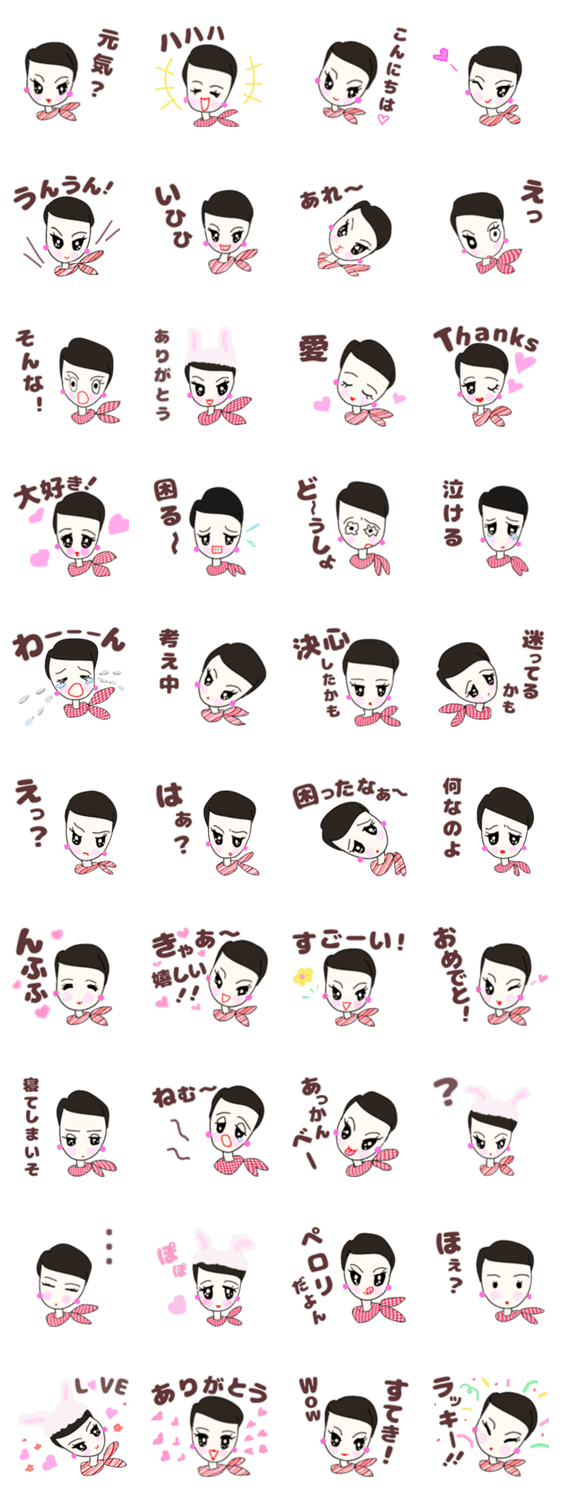 | スタンプ説明 | 喜怒哀楽&etc ブラックヘアパターン ちょっとにじみ出る昭和感 おまけのバニーガールです |