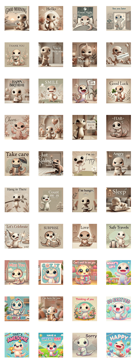 日常の会話がもっと楽しくなる、可愛い赤ちゃんトカゲのスタンプ!癒しと元気をあなたのトークにお届けします。