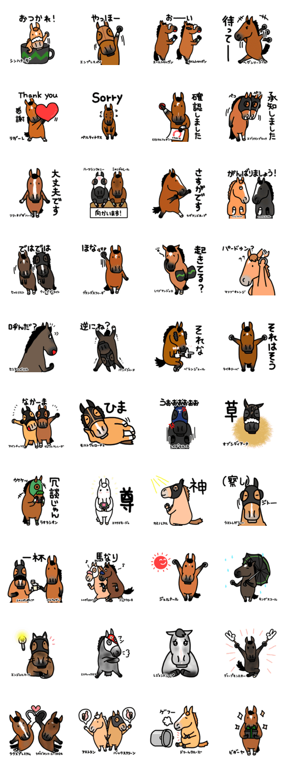 | スタンプ説明 | おがわじゅりデザイン!DMM バヌーシー所属馬のオリジナルスタンプ第3弾が登場! |
