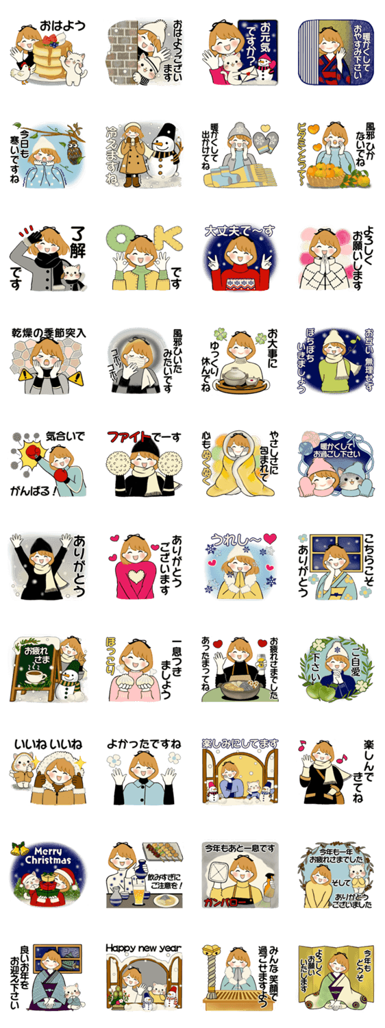 リボンちゃん12の改訂版です。 冬に使いやすい心温まる日常スタンプです。年末年始のご挨拶にもぜひ。日常/挨拶/敬語/クリスマス/大晦日/お正月/年末年始/敬語入り